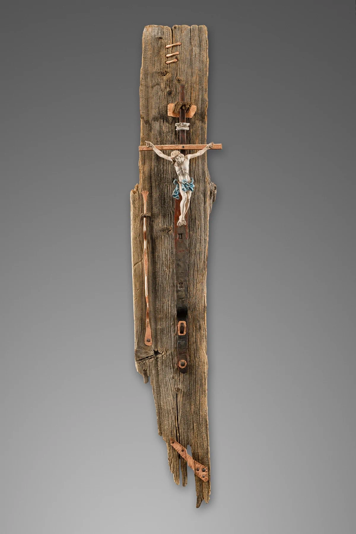 Kreuz / 100 cm / Altholz, Metall und Kupfer