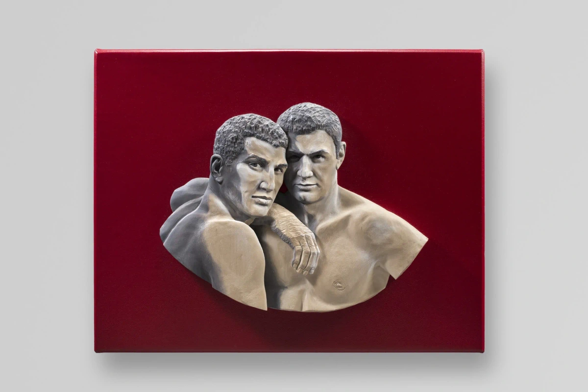 Klitschko Brüder / 80 x 65 cm / Linde mit Leder
