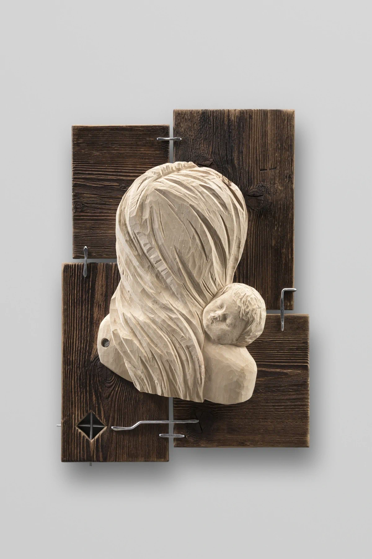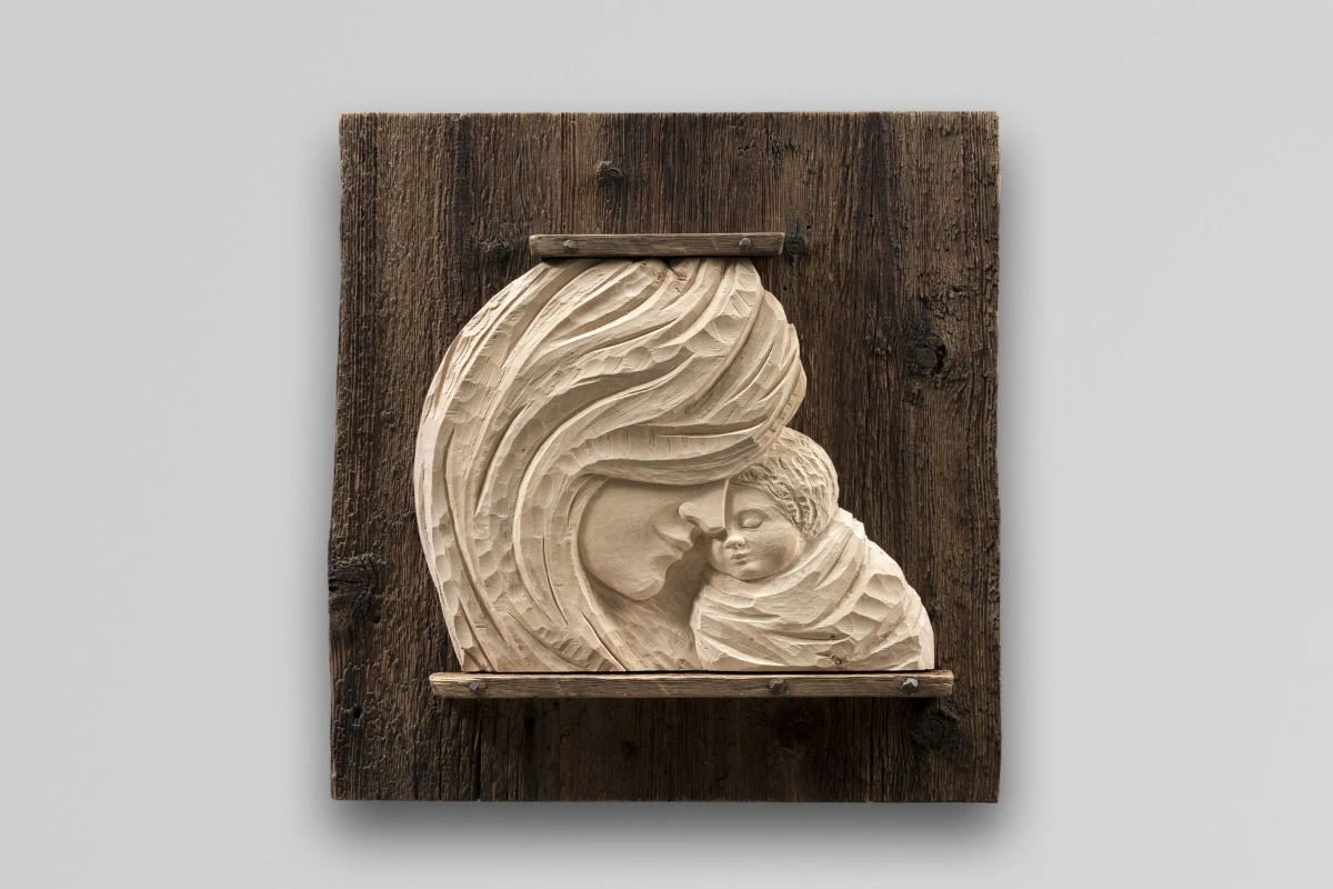 Geborgenheit / 55 x 57 cm / Linde mit Altholz